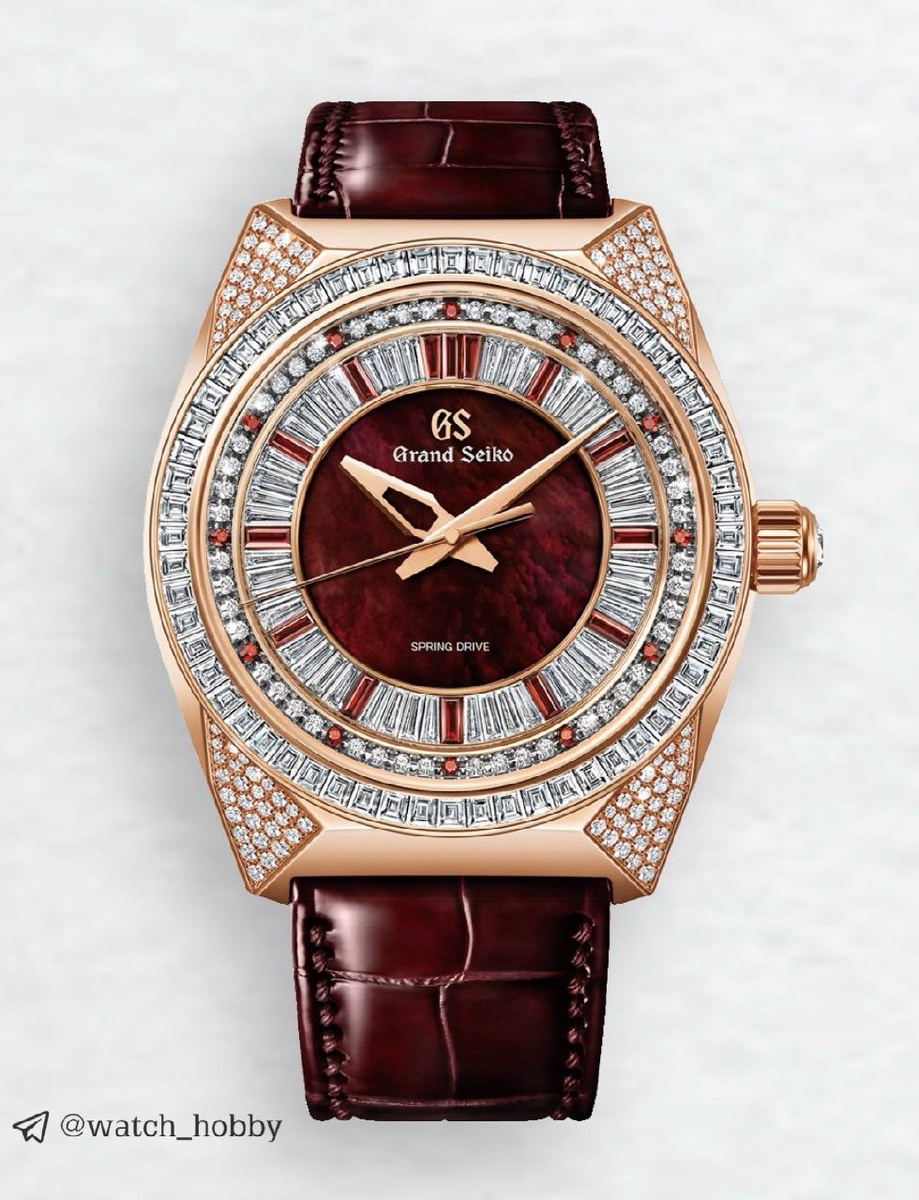Часы, хотя больше ювелирка, олицетворяющие величие и страсть льва. Блистательная новинка! Что с характеристиками: - Корпус из золота - Ремешок из кожи - Перламутровый циферблат с бриллиантами - Размер корпуса: 44.5 мм - От ушка до ушка: 52 мм - Высота корпуса: 14.4 мм - Сатиновая и зеркальная полировка - Сапфировое стекло - Водозащита 100 метров - Индикатор запаса хода - Механический калибр Grand Seiko 9R01 с запасом хода в 192 часа Корпус из золота усыпан бриллиантами - 267 камней суммарным весом 6 карат. Красные камни - это гранат, их количество составляет 26 штук, а вес 0.87 карат 💎 Центральная часть циферблата выполнена из красного перламутра, далее идет основание из золота, в котором находятся камни. 3 стрелки, логотип и аккуратная надпись в нижней части циферблата - ничего более. Работу механизма можно рассмотреть сквозь заднюю прозрачную крышку, там же, на обратной стороне часов, находится индикатор запаса хода. Старт продаж намечен на октябрь 2026 года, а тираж очень огра