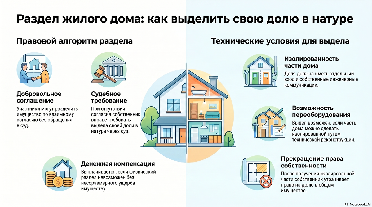 При каких условиях жилой дом можно разделить на самостоятельные части?