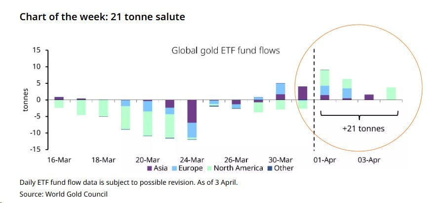 🌕 Притоки в фонды золота значительно выросли с начала апреля — WGC