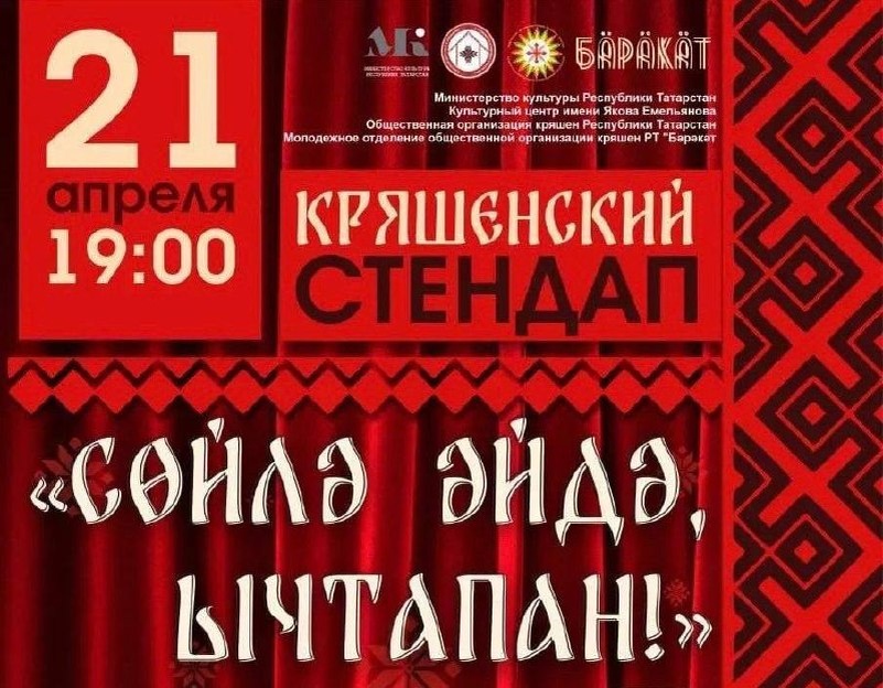 ! 21 апрель көнне Керәшен үзәгендә керәшен юмористлары мәзәк сөйләячәк! Кызык булачак, диләр! Олег Фазылҗанов, Дима Баранов һәм башкалар булачак. Мунча ташын бер якка куя, ди! Элек керәшен чаралары булмаган, хәзер - рәхәтләнеп йөреп тор! Әйбәт бит! 🤩