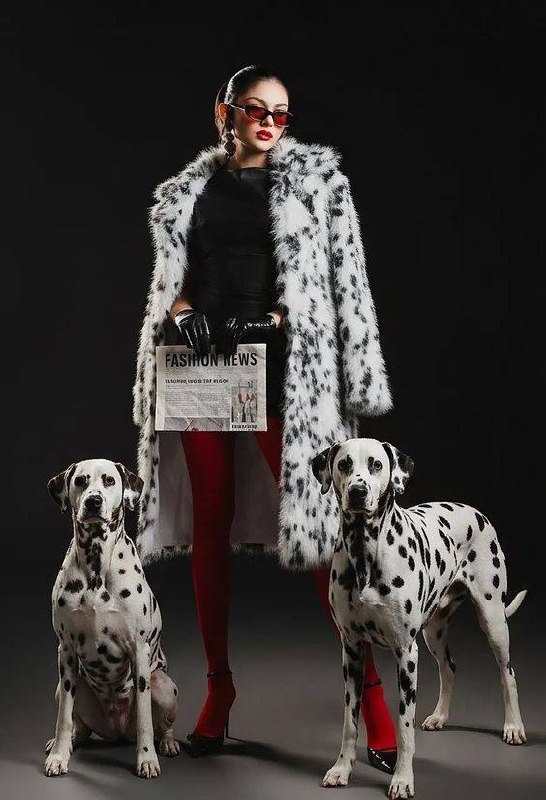 Если вам порядком поднадоели вещи с окрасом под зебру, змею и леопард с коровой, то обратите внимания на образ в стиле «Круэллы Дэ-Вилль» из нашего любимого мультфильма детства! Монохромный чб принт красиво смотрится в разных материалах и фактурах – коже, замше, мехе и даже шифоне. Такой визуально интересный и без перегруженности 🤍