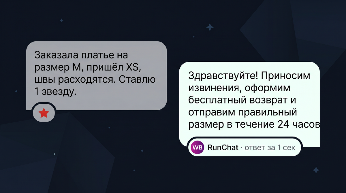 Если же бренд молчит, отвечает одинаково всем подряд или, хуже того, вступает в конфликт — это прямой удар по конверсии. Причём видит это не только автор отзыва, но и вся аудитория карточки.
