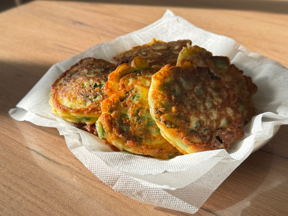 - Выкладывайте тесто столовой ложкой, формируя круглые оладушки толщиной около 1–1,5 см. Не делайте их слишком толстыми — так они лучше прожарятся внутри.