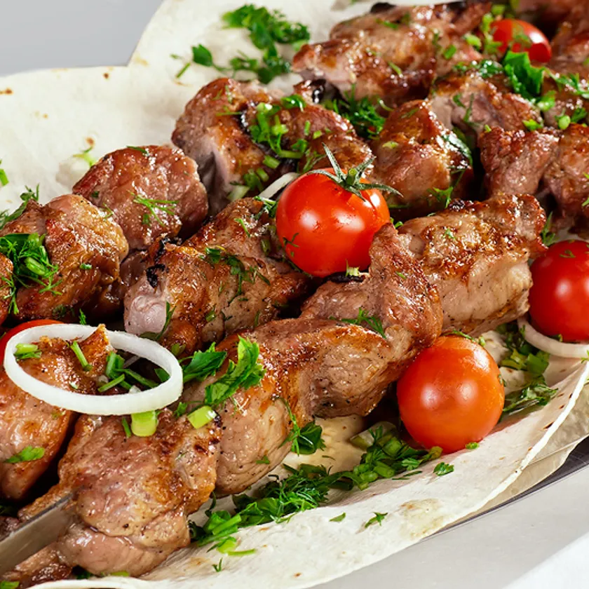 Самый вкусный, нежный и сочный шашлык получается из свинины. Готовьте его по замечательным рецептам из этой коллекции, пробуйте разные маринады для шашлыка, экспериментируйте! Лучше всего готовить шашлык из свиной шеи. Можно взять кострец или лопатку, но лопатка жестковата, ей нужен сильный маринад. Жир должен пронизывать кусочки изнутри, а не сверху. Так шашлык будет сочным и не обгорит, не получит горький привкус. Нежирное мясо получится сухим. Парное и замороженное мясо не годится для шашлыка, берите охлажденное. Из парного (только что после забоя) шашлык получится жёсткий. Из замороженного мяса тоже, потому что при разморозке вытекает много сока. Мясо режьте поперек волокон кубиками со стороной около 4 см, потому что маленькие куски высохнут, а большие не прожарятся. Не используйте уксус для маринования, он сушит мясо. Мягкому мясу вообще не требуется кислота. Для придания вкуса можно добавить фруктовый или рисовый уксус, томатный сок. На шампур мясо насаживают вдоль волокон. Кусоч