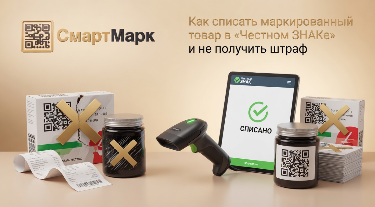 Склад завален браком, часть товара вернули клиенты, где-то стерлись коды — ситуация обычная. Но в системе «Честный ЗНАК» всё это продолжает числиться у вас на балансе. Для системы товар «жив», даже если его уже нет физически. И именно это становится проблемой: при проверке возникает расхождение, а дальше — штрафы и вопросы. Важно понимать: автоматическое списание работает только при продаже через кассу. Во всех остальных случаях — брак, порча, утеря, повреждённый DataMatrix, списание на собственные нужды или закрытие бизнеса — данные нужно передавать вручную. И делать это нужно вовремя, в течение 3 рабочих дней с момента выбытия товара. Частая ошибка — путаница между «выводом из оборота» и «списанием кода». Логика простая: если товара больше нет — оформляется вывод из оборота, код получает статус «выбыл». Если товар есть, но код повреждён — используется списание, после чего товар нужно перемаркировать. Ошибка в выборе документа приводит к тому, что коды зависают в системе или получают