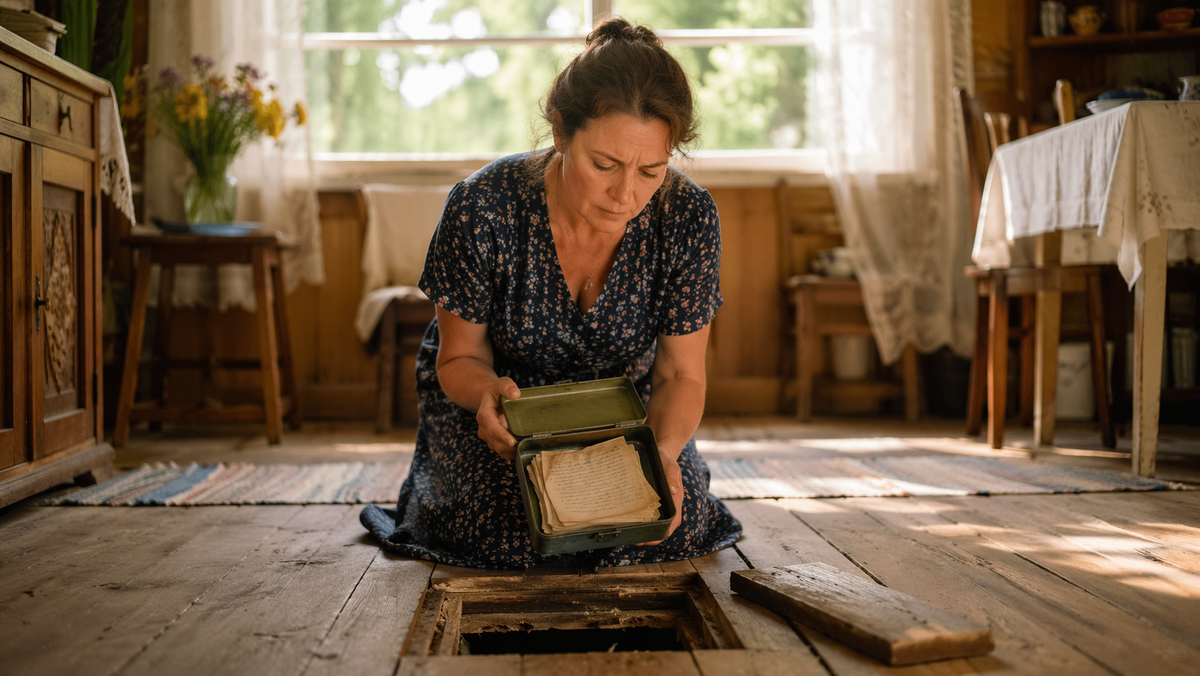 Половица в комнате у окна поддалась только с третьего раза. Когда Вера подсунула под неё стамеску и нажала сильнее, из темноты пахнуло сырой пылью, старой мятой и чем-то железным, будто дом много лет держал рот на замке.