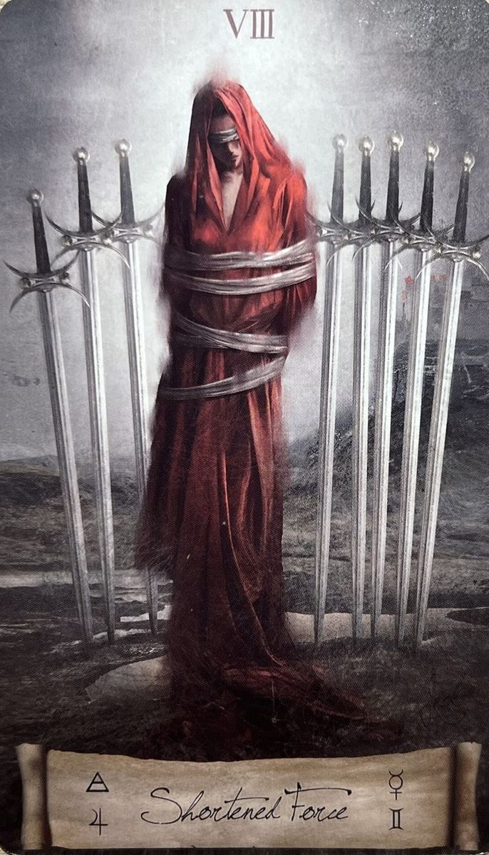 Ещё 8 Мечей часто про страх высказаться. Страшно показаться странным, неправильным, неудобным. Боишься, что тебя не поймут. Сидишь, смотришь на чужие мнения - и думаешь: «ну, наверное, я один так думаю». И молчишь.