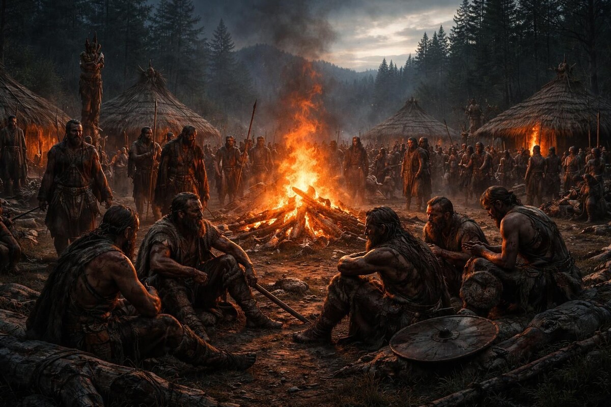 После кровопролитных сражений древний мир погружался в тишину. Она была необычной, тревожащей своей глубиной. Усталые и порой напуганные люди возвращались в лагерь, чувствуя усталость и тревогу. Именно тогда племени особенно необходим был центр притяжения, который мог вновь собрать всех вместе, вернуть ощущение семьи и безопасности. Этим центром практически всегда становился костёр. Люди собирались вокруг пламени инстинктивно, подобно тому, как насекомые слетаются на свет фонаря. Тишина сменялась рассказами воинов о прошедшем бое, звуками смеха и тяжестью воспоминаний. Постепенно напряжение отступало, и сердце наполнялось теплом родного очага. Археологические раскопки показывают, что многие стоянки древнего человека содержат специальные крупные костровые площадки. Эти места значительно превышают размеры обычных кухонных очагов. Они расположены прямо посередине поселений. Исследования следов позволяют предположить, что подобные костры зажигались не для готовки еды. Их разводили для совм
