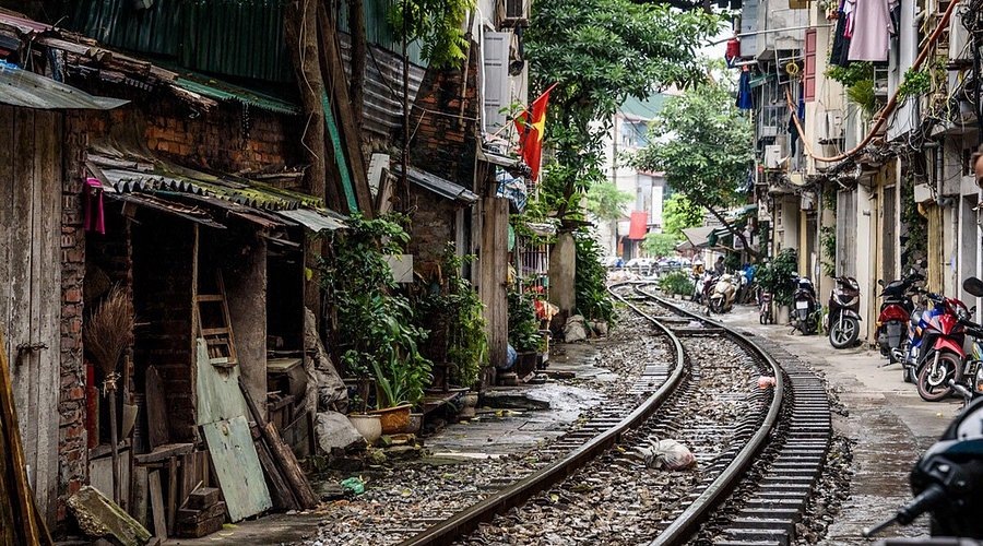 Одна из самых необычных точек Ханоя. Узкая улица, где между домами проходят железнодорожные пути, по которым всё ещё ходят поезда. В остальное время это обычная жилая улица с кафе, стульями прямо у рельсов и неспешной жизнью.