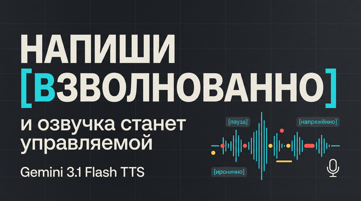 Раньше синтез речи звучал как диктор на похоронах — монотонно, без паузы, без эмоций. Google выпустила Gemini 3.1 Flash TTS, и теперь ты буквально можешь прописать голосу команду «[взволнованно]» — и он будет взволнован. 15 апреля Google представила новое поколение своей модели для синтеза речи. Это не очередное «чуть лучше звучит» — здесь появилась принципиально другая механика управления голосом. Главная фишка — аудиотеги. Это команды в квадратных скобках, которые ты вставляешь прямо в текст. Хочешь, чтобы диктор сделал паузу — пишешь [пауза]. Нужна напряжённость — [напряжённо]. Хочешь, чтобы следующая реплика прозвучала с иронией — ну, ты понял. Доступно больше 200 таких тегов: эмоции, темп, акцент, стиль подачи. Для сравнения: раньше, чтобы добиться чего-то похожего, нужно было перегенерировать аудио десять раз, скрещивая пальцы. Теперь — просто пишешь режиссёрскую ремарку в тексте. Если ты делаешь контент — любой: подкасты, обучающие видео, озвучку для роликов, аудиокниги — это бу