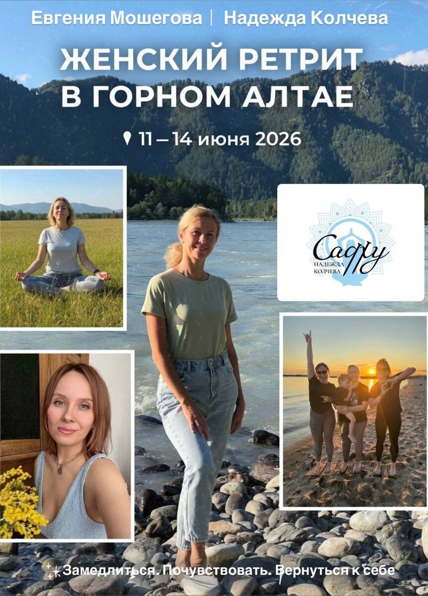 📍 11–14 июня 2026 ✨ Замедлиться. Почувствовать. Вернуться к себе. Ты можешь продолжать бежать. Закрывать «надо», держать всё под контролем, быть сильной… А можешь — остановиться. И услышать себя по-настоящему. Этот ретрит — не про «сделать лучше». Он про вспомнить себя настоящую. ❓Этот ретрит для тебя, если сейчас: 🔹 Ты чувствуешь хроническую усталость — даже после выходных нет сил. 🔹 Внутреннее напряжение стало фоном жизни — плечи зажаты, дыхание поверхностное. 🔹 Ты разучилась хотеть — не знаешь, чего хочешь на самом деле, всё «надо» и «правильно». 🔹 Тревога или апатия заменяют радость. 🔹 Ты потеряла контакт с телом — живёшь в голове, в списках дел, в чужих ожиданиях. 🔹 Ты даёшь другим постоянно, а себе — по остаточному принципу. 🔹 Ты боишься остановиться — кажется, что мир рухнет без твоего контроля. 🔹 Внутри — пустота или раздражение, а хочется тепла и мягкой силы. Этот ретрит — твоё разрешение выдохнуть. 🌿 Горный Алтай — место силы Где горы говорят тишиной, реки очи
