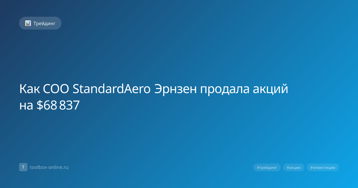 COO StandardAero Эрнзен продала 1 200 акций компании на сумму $68 837 (≈5 200 000 ₽) 15 марта 2026 года, и уже в течение часа цена акции выросла на 3,2 %. Эта инсайдерская сделка сразу попала в новостные ленты, изменив динамику торгов на бирже. Трейдерам важно понять, как такие операции влияют на рынок и какие стратегии можно применить. Прямой ответ: нужно сравнить объём сделки с общим объёмом свободного обращения и проанализировать реакцию цены в первые 60 минут после публикации. Для COO StandardAero Эрнзен объём в 1 200 акций составил 0,45 % от общего свободного обращения (≈267 000 акций). При таком небольшом проценте, но высокой позиции инсайдера, цена обычно реагирует сильнее, чем при обычных рыночных ордерах. Трейдеры используют следующие шаги: Прямой ответ: инсайдеры обладают информацией, недоступной широкой публике, и их действия часто предвещают изменения фундаментальных показателей компании. Продажа акций со стороны высшего руководства может сигнализировать о предстоящих реорг