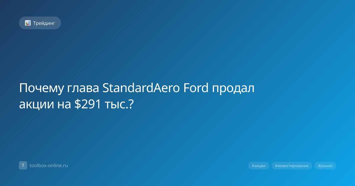Глава StandardAero Ford продал акции на сумму $291 000, что эквивалентно примерно 22 млн рублей по курсу 2026 года, чтобы реинвестировать средства в новые проекты компании. Сделка была публично объявлена 12 марта 2026 года и сразу привлекла внимание аналитиков. Таким образом, продажа стала сигналом о стратегическом переориентировании бизнеса. Причина продажи заключается в необходимости привлечения капитала для разработки новых аэрокосмических технологий. Руководство компании заявило, что полученные $291 000 будут направлены на исследовательский центр, открытый в Техасе, где планируется увеличить объём инвестиций на 15 % в 2026 году. Инвесторы реагируют положительно, потому что продажа акций демонстрирует уверенность руководства в будущих доходах. После объявления цены акций выросли на 4,2 % в тот же день, а объём торгов увеличился до 1,5 млн акций. Если вы уже владеете акциями StandardAero, следует пересмотреть портфель и оценить влияние продажи на вашу стратегию. Рекомендуется: Оценит