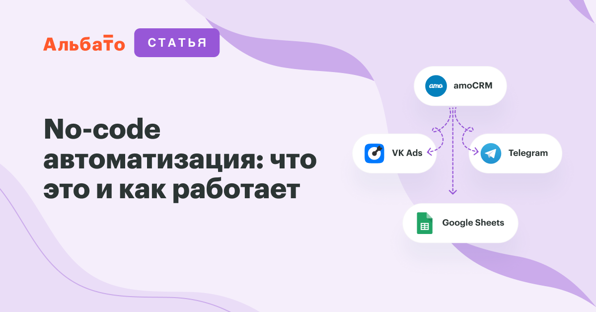 Такие платформы называют iPaaS (облачная платформа интеграций). На российском рынке работает Альбато с более чем 1 000 коннекторов: amoCRM, Битрикс24, VK Ads, Яндекс Директ, Telegram, Google Таблицы и другие.
