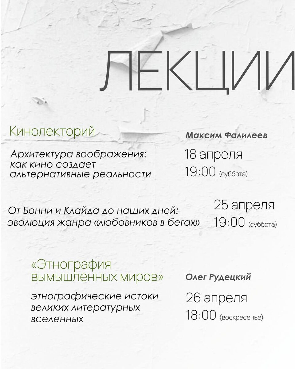 » ✔ #18_апреля — лекция Максима Фалилеева о том, как кино создает альтернативные реальности ✔ #25_апреля — разбор эволюции жанра «любовников в бегах» ✔ #26_апреля — лекция об этнографии вымышленных миров и литературных вселенных ✔ Анализ киноязыка, визуальных образов и построения миров ✔ Формат лектория с глубоким разбором и обсуждением 📅 Когда: #18_апреля, 19:00; #25_апреля, 19:00; #26_апреля, 18:00 ⛳ Где: галерея «Биом», ул. Карла Маркса, 45 📞 Контакты: +7 (994) 142-30-88 Регистрация Подпишись на случай, если заблокируют Телеграм👉 MAX