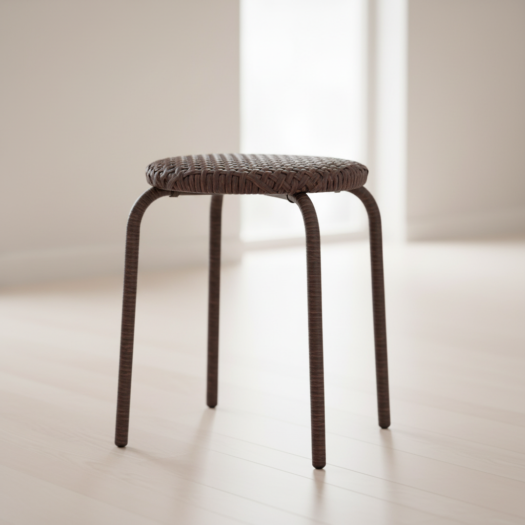 Особую привлекательность табуретке придаёт плетение. Именно оно делает изделие визуально лёгким, воздушным и при этом выразительным. Ротанг хорошо раскрывает себя в разных техниках: плотное классическое плетение создаёт аккуратную, спокойную поверхность; диагональное плетение добавляет динамику и ритм; ажурные узоры делают изделие более декоративным и изящным; а комбинированные способы позволяют подчеркнуть форму сиденья и сделать табуретку более авторской. Благодаря этому каждая модель приобретает свой характер — от строгого минимализма до тёплой ремесленной декоративности.