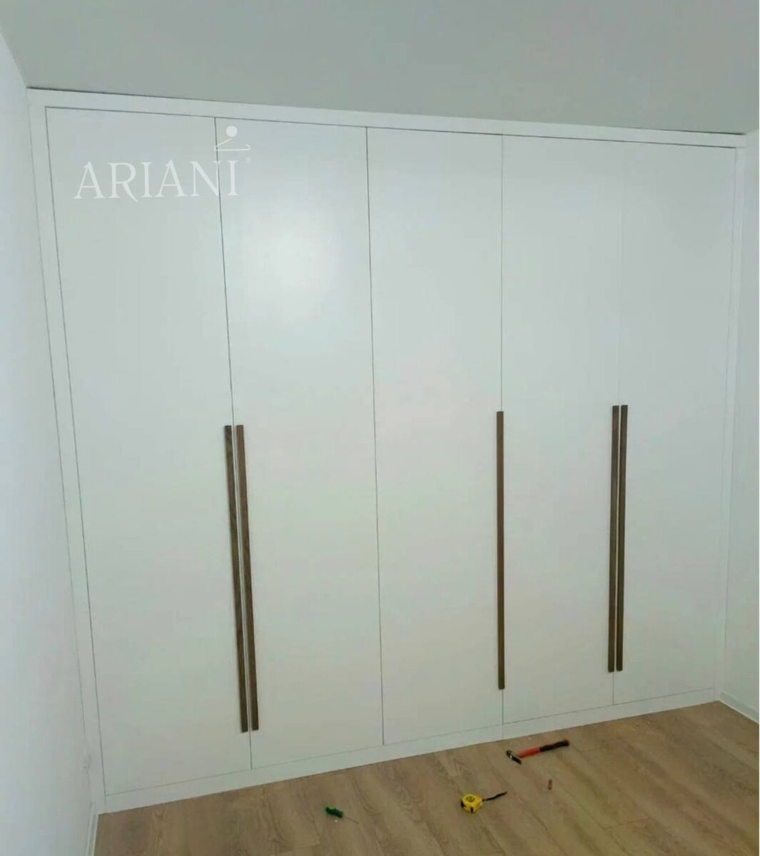 ? Часто бывает так: места под отдельную гардеробную в квартире нет, а вещей меньше не становится. В итоге одежда кочует по разным углам, а гладильная доска вечно мешается под рукой. Знакомо? Мы в ARIANI решили эту проблему, создав шкаф, который по комфорту ничуть не уступает отдельной комнате для вещей. В чем секрет этого проекта? Главное — это глубина 700 мм. Мы не стали экономить на сантиметрах, чтобы вещи висели свободно, а не втискивались впритык к дверцам. При внушительных габаритах (ширина 2836 мм, высота 2560 мм) этот гигант выглядит очень аккуратно. Что внутри и снаружи: • Внутри мы использовали ЛДСП Egger в оттенке «Дуб Урбан Янтарный». Теплое дерево создает тот самый уют, который чувствуешь, заходя в дорогую гардеробную. • Снаружи лаконичный «Белый Жемчуг». Шкаф буквально растворился в интерьере, не перегружая пространство. Фишки, которые делают жизнь удобней: Мы наполнили его функциями, о которых обычно забывают в простых шкафах: ✅Пантограф: легким движением опуск