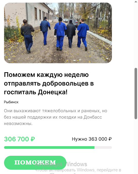 Зашел на платформу поддержки православной благотворительности. Мы все видим и знаем как каждый день по всем каналам собирают деньги на лечение то одного ребенка, то другого. Это при нашей "бесплатной медицине" которая, получается, не работает??? Или работает но не так. Или что это??? Или государство выборочно бросает кого-то, а кому-то также выборочно помогает? Как и почему такое происходит? Смотрю какой сбор осуществляет церковь. Давайте посмотрим вместе. То есть, я так понимаю, что без волонтеров никуда. Это ладно, как говорится, лишних рук не будет - любая помощь пригодится. И хорошо что волонтеры еще у нас есть, несмотря на то как государство относится к людям эти самые люди не теряют надежду и веру. Но идем дальше. Смотрим на что еще собирают Вот собирают 3 миллиона на воду О проблеме, которую террористы устроили с водой в Донецке мало пишут и говорят по федеральным каналам где все и всегда очень хорошо, но проблема действительно была и есть! Ее решают, но, как мы видим, получаетс