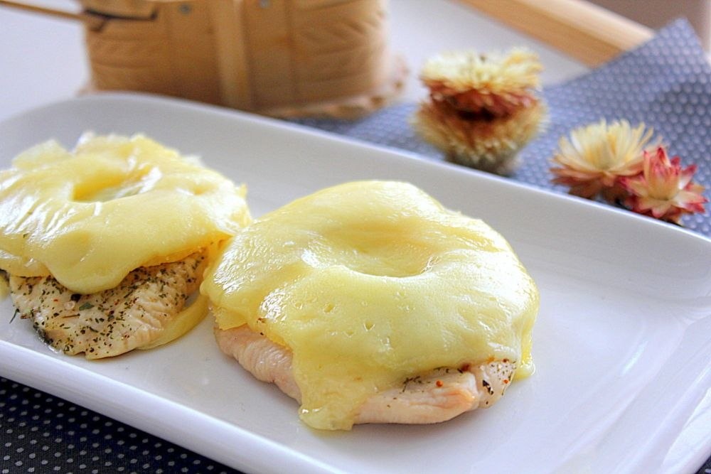 🍍🧀 Всего три основных ингредиента и 15 минут — и горячее готово! Сочная куриная грудка, сладкий ананас и тягучий сыр. Минимум усилий, максимум вкуса. Попробуйте с ароматным рисом. 📖 Ингредиенты: · Куриная грудка — 500 г · Сыр полутвёрдый — 100 г · Ананас (консервированный или свежий) — 150 г · Приправа (прованские травы, соль) — по вкусу 🧑🏻🍳 Приготовление: 1. Разогрейте духовку до 180°С. Противень застелите бумагой для выпечки. 2. Куриную грудку нарежьте вдоль на кусочки толщиной около 1 см, чтобы они пропеклись равномерно. 3. Присыпьте курицу приправой с солью. Выложите на противень и запекайте 10 минут. 4. Ананас нарежьте кусочками (консервированные кольца можно оставить как есть или разрезать вдоль на более тонкие). Достаньте курицу из духовки, выложите сверху ананас. 5. Сыр нарежьте пластинками и положите на ананас. Верните в духовку ещё на 5 минут. 6. Подавайте сразу горячим. 💡 Советы: · Свежий ананас лучше предварительно потушить 5–7 минут (при необходимости с доба
