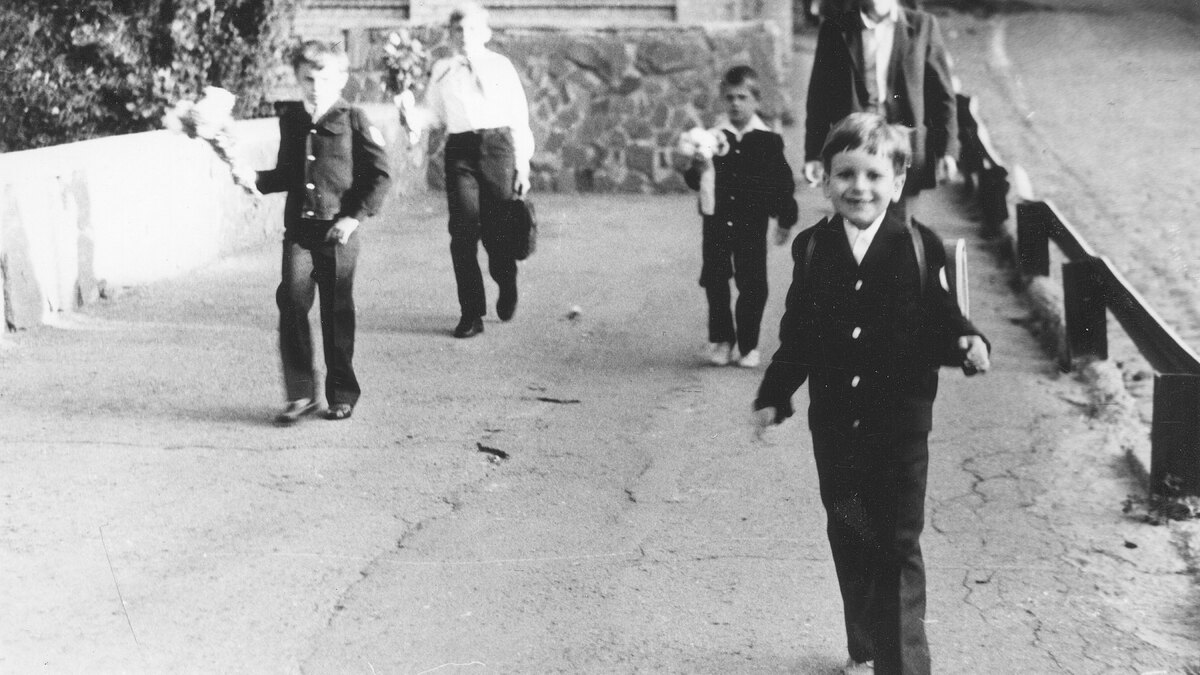 А потом пришли 1970-е, и мальчишеская форма снова изменилась. С 1973 года появился синий костюм с эмблемой на рукаве. Его очень хорошо помнят именно как вещь эпохи: чуть жестковатая полушерсть, пуговицы, школьный пиджак, который дома надо было повесить аккуратно, чтобы не измялся, и брюки, на которых берегли стрелки. Но как бы ни менялись официальные варианты, домашний смысл формы оставался прежним. Ее нельзя было просто носить. Ее надо было вести через неделю: чистить, отпаривать, пришивать, стирать, сушить, утром проверять перед зеркалом.