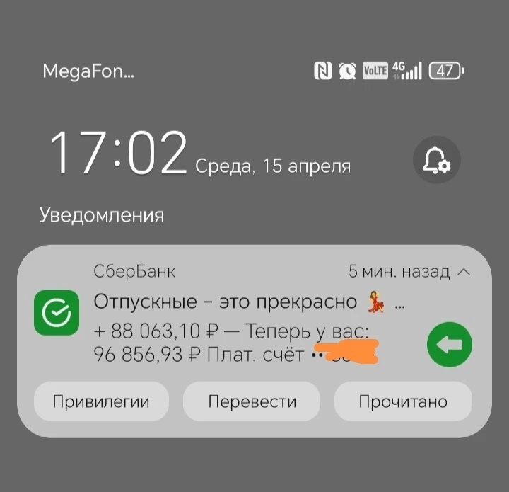 Дальше я перевожу все отпускные на сберегательный счет и в день зарплаты перевожу нужную сумму обратно на карту.