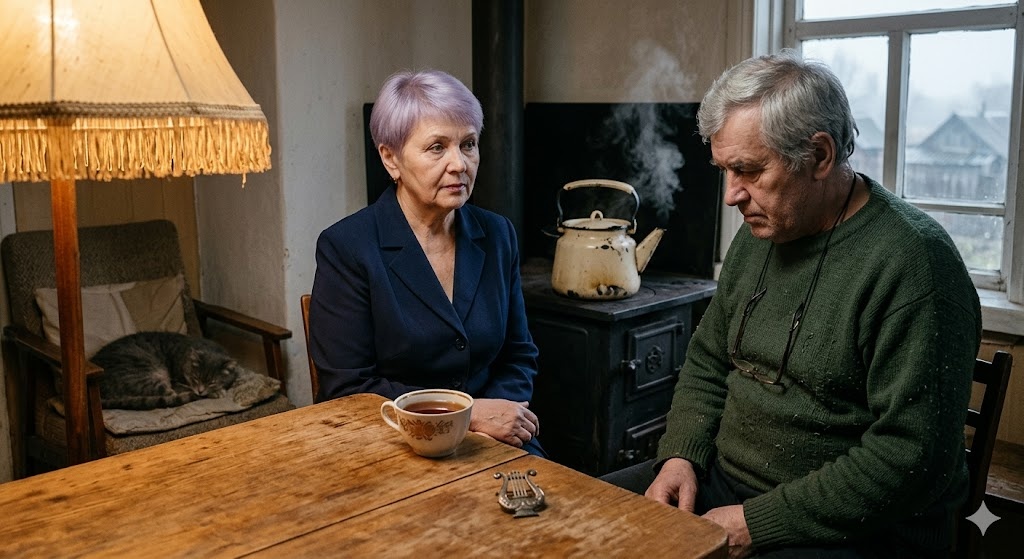 В сенях она забыла брошь — та осталась на столе, рядом с её нетронутой чашкой. Михаил её заметил. Но не окликнул. Он встал, подошёл к плите и выключил чайник. Чайник зашипел и замолчал. Кошка открыла один глаз, посмотрела на брошь и снова закрыла.