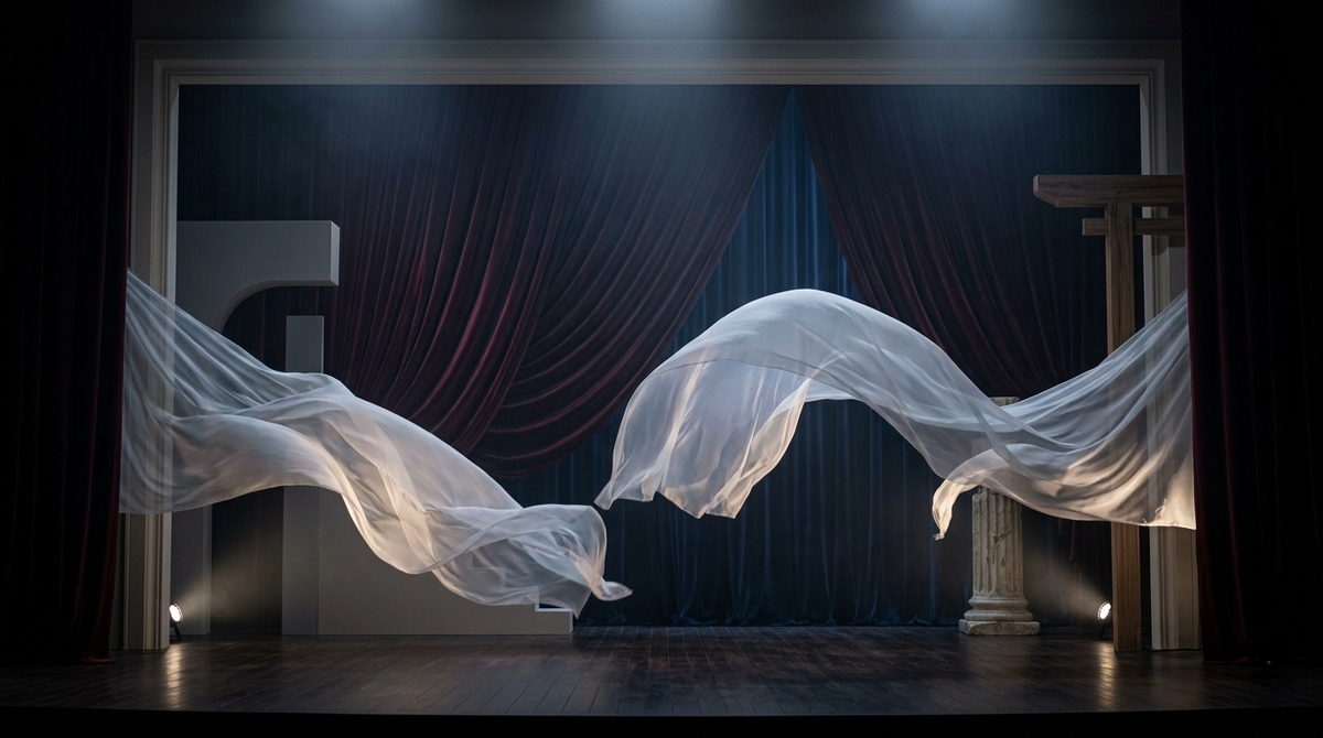 Перенести эту кинематографичную невесомость на сцену — значит рискнуть всем. Сценография спектакля намеренно лишена тяжеловесной бытовизации. Воздух, свет и полупрозрачные фактуры заменяют монтажные склейки. Каждая мизансцена выстроена с математической точностью, чтобы заменить зрителю объектив кинокамеры. Режиссер виртуозно переводит язык экрана в живую, дышащую театральную ткань, доказывая, что сценический «крупный план» создается не софитами, а предельной концентрацией внутренней жизни артиста.