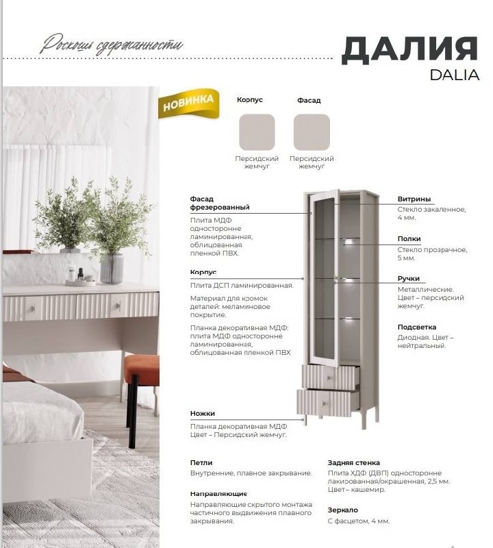 Эта коллекция – идеальный выбор для тех, кто стремится к созданию уютного пространства, но с современным оттенком. Мягкие линии рифлёных фасадов, закругленные края и нежная цветовая гамма делают пространство ярким, привносят в дом атмосферу домашнего спокойствия. Состоит из 29 элементов, позволяющих обустроить спальню и гостиную. Полный ассортимент коллекции Далия по ссылке ➡ brwmebelspb.ru/dalia Шкаф витрина - цена 43 999 руб. Ширина 57 см Высота 202 см Глубина 41 см В наличии на складе в СПб. Цена действительна до 30.04.2026 г. Купить! Ознакомиться с полным ассортиментом фабрики БРВ-Мебель по ссылке ➡ brwmebelspb.ru ☎9258856 Адреса салонов: 📍г. Кудрово, ул. Промышленная, дом 3 к. 3. 📍 Центр мебели и интерьера "Кубатура" ул. Фучика дом 9, Цокольный этаж секция ОА. 107.