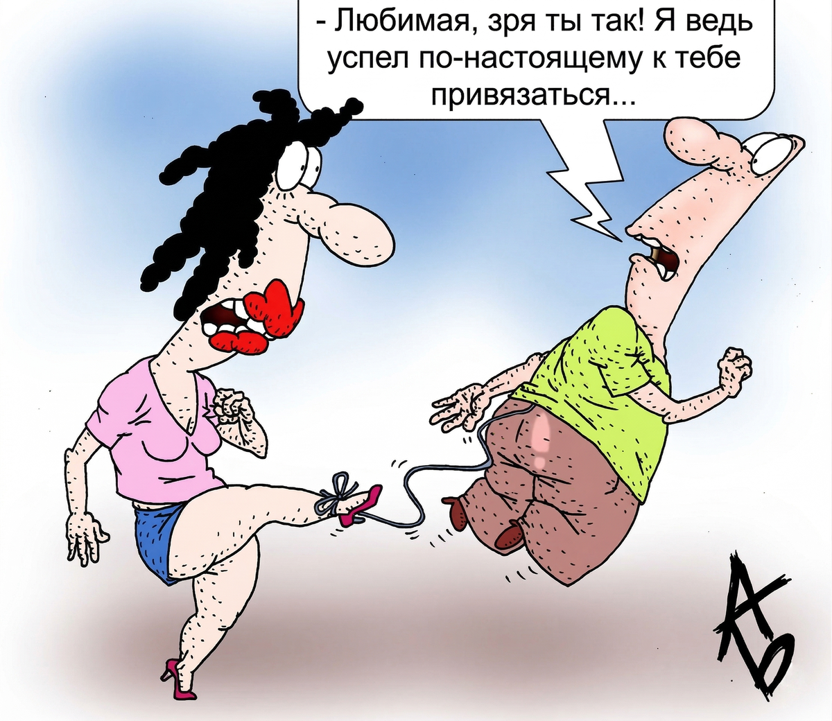 Андрей Бузов часто изображал на карикатурах женщин. На его рисунках они часто доминируют над мужчинами и буквально подавляют их своей монументальностью. Эти женщины-скалы и женщины-крепости обладают столь напористой харизмой и выдающимися формами, что мужчины на их фоне как-то сразу мельчают и теряются. В работах автора именно женщина играет главную роль в отношениях. А мужчина здесь существо ведомое, слегка растерянное. Он словно спутник, вращающийся вокруг гигантской планеты и вынужденный подчиняться законам гравитации. И можно ли противиться природе, когда речь идёт о таком притяжении? Надо сказать, что образ доминирующей женщины любят использовать в своих работах многие карикатуристы: такой подход позволяет перевернуть с ног на голову привычные стереотипы. Кроме того, гротеск, позволяющий довести ситуацию до абсурда, делает сюжет выпуклым, а происходящее — узнаваемым и забавным. Превращая повседневные сцены в фарс, карикатуристы выбирают образ сильной женщины, которая «мамонта на с
