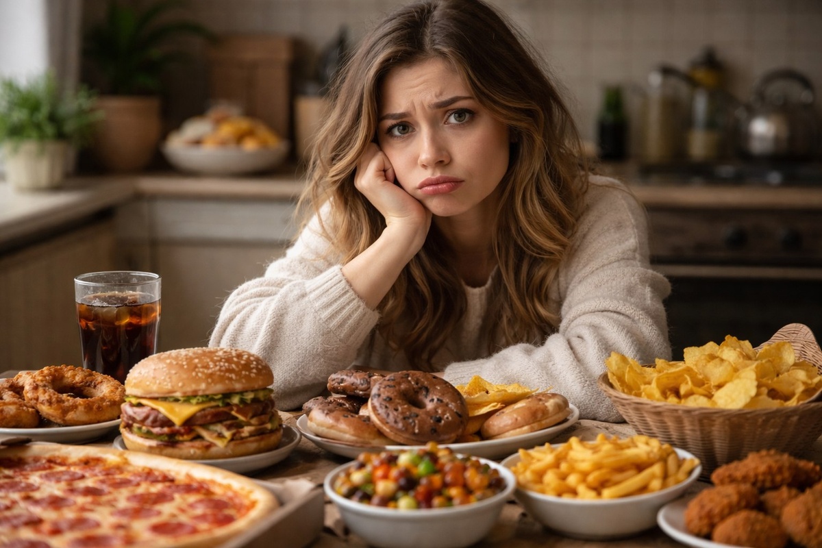 Представьте себе кухню как театральную сцену. На одной стороне — герои: овощи, фрукты и нежирное мясо. Они яркие, красочные и всегда готовы прийти на помощь вашему здоровью. На другой стороне — злодеи: чипсы, сладости и всякие "вкусняшки", которые шепчут вам на ухо: "Съешь меня! Я сделаю тебя счастливым!" Но помните, счастье — это не всегда хорошая идея, особенно если у вас есть весы.