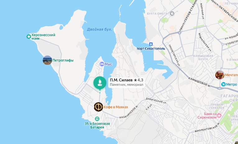 Памятник находится в районе бухты Казачьей. На карте отмечен как памятник Силаеву: