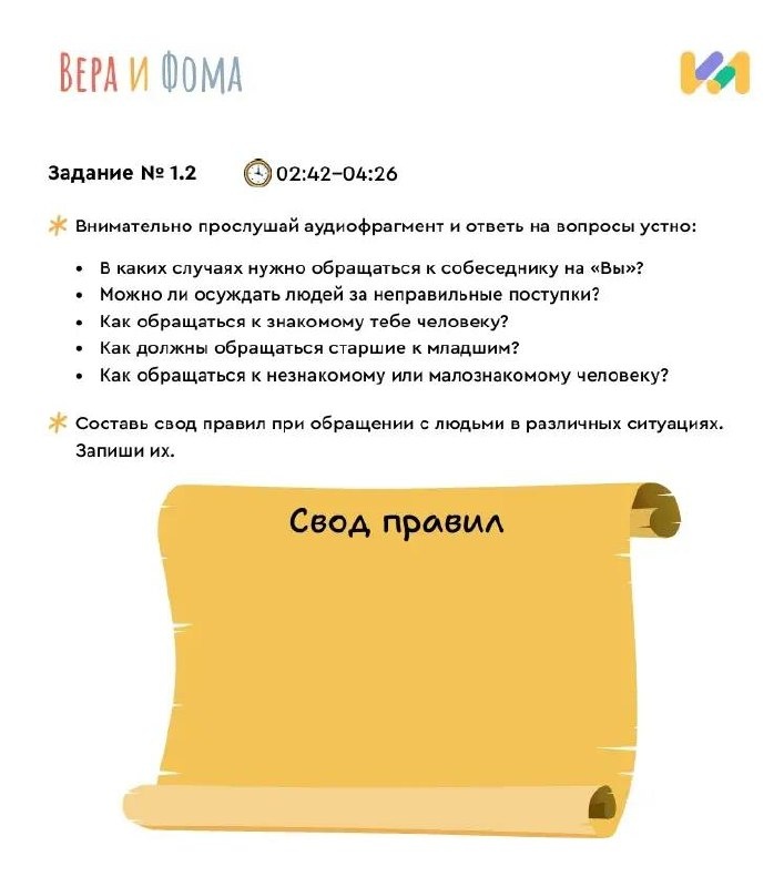 Проект «В школу с Верой и Фомой» сочетает аудиоспектакли и учебные задания — так дети не просто усваивают материал, а «проживают» его вместе с героями. Формат поддерживает мотивацию к учебе, развивает логику и креативность, помогает применять знания на практике и экономит время педагогов на подготовку к урокам. Для 2‑го класса: ▪️русский язык: виды текстов, текст‑повествование; ▪️математика: конкретный смысл действия умножения; ▪️литературное чтение: весна в стихотворениях русских поэтов, стихи о маме; ▪️окружающий мир: весенние изменения в природе. Для 3‑го класса: ▪️русский язык: личные местоимения и их употребление в речи; ▪️математика: приемы устных вычислений в пределах 1 000; ▪️литературное чтение: Н. Н. Носов «Федина задача», А. П. Платонов «Цветок на земле». Помогаем сделать учебу захватывающей и даем детям не только знания, но и правильные духовно‑нравственные ориентиры!