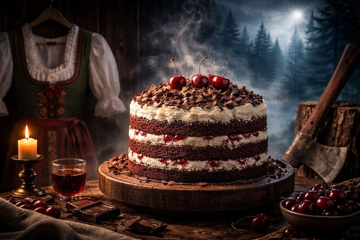 Знаете, что общего между немецкими лесорубами, женским костюмом с помпонами и вашим праздничным столом? Сегодня я расскажу историю торта, который носит имя мистического леса, скрывает под шоколадной глазурью вишнёвую бунтарку и считается самым фотогеничным десертом Германии. Готовьте ножи — будем резать правду и шварцвальдский вишнёвый торт. Поехали! 🚀