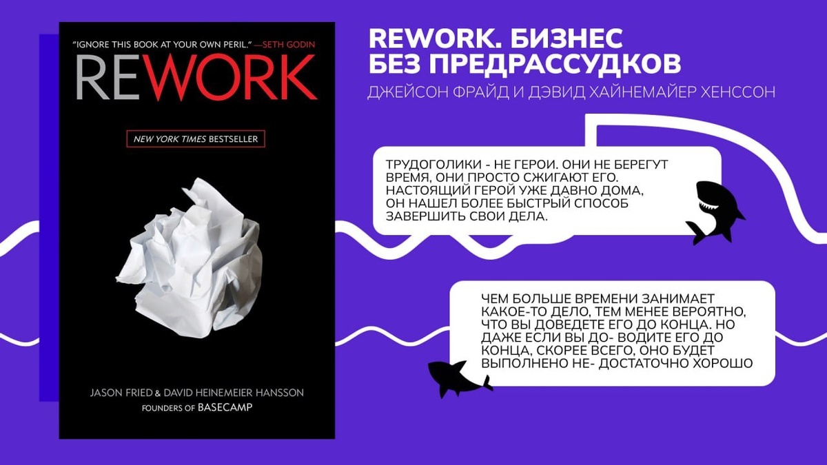🦈ТВОИ СОВЕЩАНИЯ УБИВАЮТ ДЕЛО. ТЫ ИГРАЕШЬ В КОРПОРАЦИЮ. СМИРИСЬ. У тебя может быть красивая презентация. План на пятилетку. Долгие созвоны. Статус-кво. Но «имитация бурной деятельности» — не приносит результат. И дело не в нехватке времени или плохой команде. Дело в том, что ты обрастаешь бюрократией, которую сам же и создал. «Rework. Бизнес без предрассудков» — Джейсон Фрайд и Дэвид Хайнемайер Хенссон Главная мысль проста: традиционные правила бизнеса — мусор. А долгие планы — это просто угадывание. Как будто рынок говорит: «Мне плевать на твои графики… покажи мне то, что работает уже сегодня» Внутри: 🟣планы на 5 лет = гадание на кофейной гуще 🟣 совещания токсичны и съедают реальную работу 🟣 расти ради масштаба — ошибка и путь в никуда 🟣 трудоголизм не геройство, а неумение распределять время 🔥 Это не про мотивацию. Это про здравый смысл. — Если ты только готовишься начать — тебя обгонят те, кто уже делает. Акулы Зообизнеса в Вконтакте