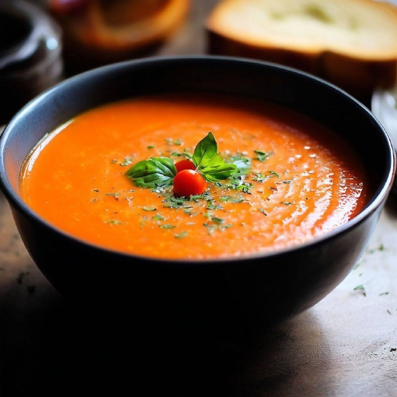 2. Лук и морковь мелко нашинкуйте и обжарьте в масле. Томаты порежьте на две части и протрите через сито. Для такой процедуры лучше всего подойдут спелые и сочные плоды. Налейте в кастрюлю 1,5 л кипятка или овощного бульона, и запустите в него подготовленные овощи. Посолите, доведите до кипения и проварите в течение 3-5 минут.