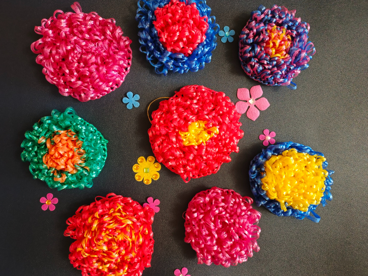 Связать губку для посуды из полипропилена — это: экономно, экологично, творчески, практично.