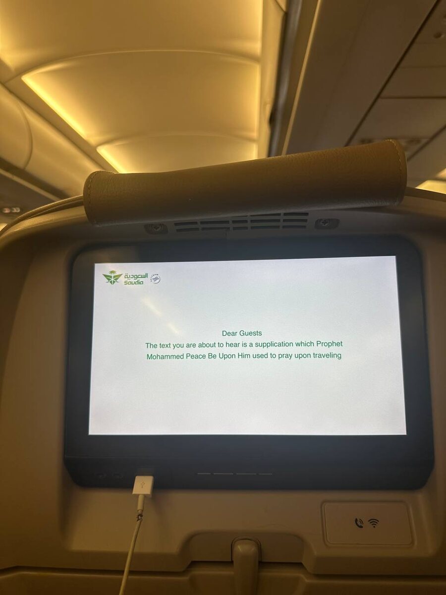 Расскажу, что нужно знать о Саудовской Аравии, если вы собираетесь ехать в эту страну. Летел саудовскими авиалиниями. На экране включены уведомления на время молитвы. И всегда показано направление в сторону Мекки. В стране на всех дорожных указателях есть направление на Мекку. Это такой чёрный куб. Почти везде есть дубль на английском. Без него передвигаться было бы невозможно. Вся разметка на дорогах — металлические шарики, наезжая на которые машина сильно начинает вибрировать. Сразу понимаешь, что едешь не по середине разметки. На указателях видно, что арабы думают справа налево и название города пишется справа, а км слева На автономерах сверху местные цифры и буквы, а снизу — человеческие. В КСА (Королевство Саудовской Аравии) все бренды должны иметь надпись на арабском. Алкоголь запрещён. Поэтому тут большое количество безалкогольного пива с миллионом разных вкусов. Также есть крепкий алкоголь без алкоголя. Мужчины в палатках, женщины в хиджабах. К нам, как к туристам, не было ни е