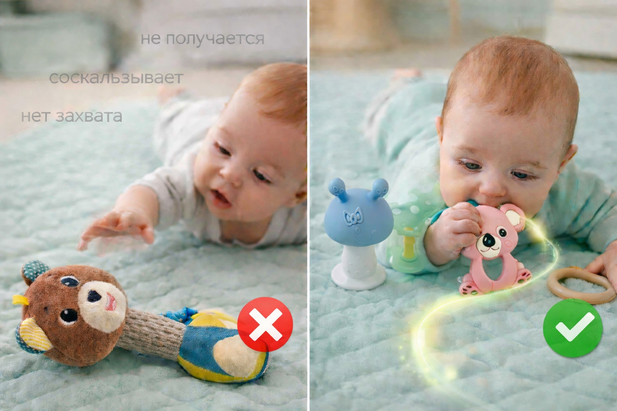 Посмотрите на 1 фото. И вот здесь важный момент, который часто упускают: 👉 малыш её просто… не может взять Не потому что «не хочет»