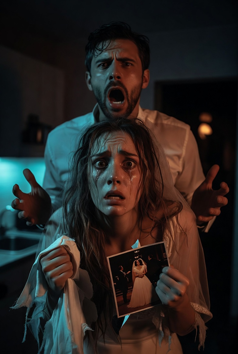 Вытащил второе — фотографию. Нашу свадебную, в рамке, которая стояла на полке в спальне. Стекло разбито, рамка погнута. Наши лица на снимке перечёркнуты ручкой — дважды, крест-накрест.