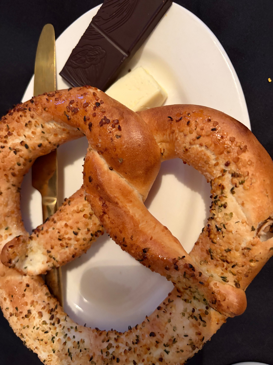 Вчера сходила после работы за крендельками,купила 4 штучки.Два с кунжутом и два с канап ..ей.Я думала у нас уже это не бывает с такими .посыпками.Но наверно для кулинарии применяют.Но мне название не нравится и больше брать не буду.У них очень большой выбор крендельков с разным наполнением,примерно сортов 20 но я часто покупаю с кунжутом.