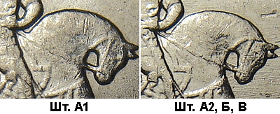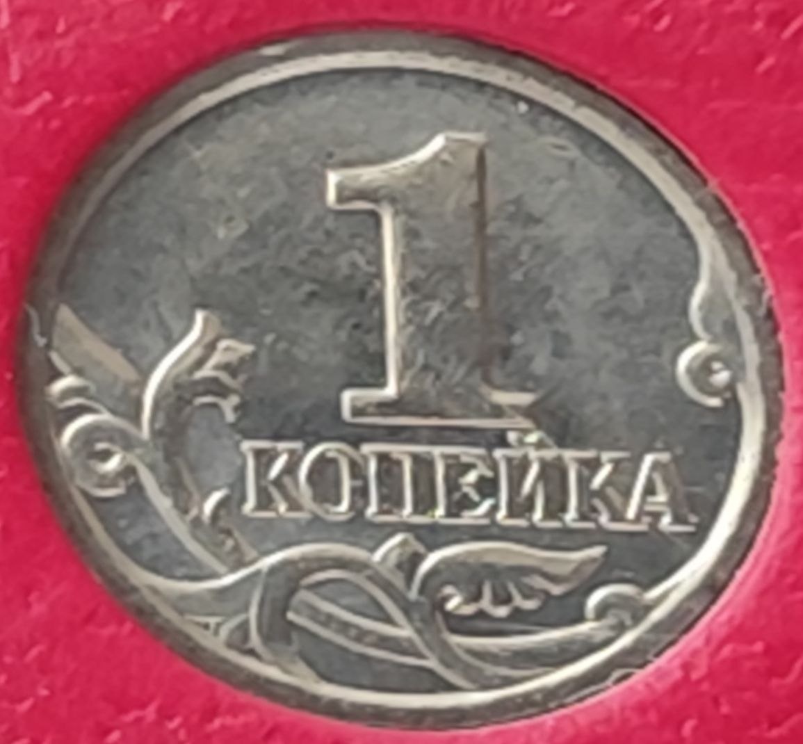На реверсе монеты прописан номинал - крупная цифра 1 чуть смещённая вправо от центра. Под ней, одной горизонтальной строкой указано название денежной единицы - надпись КОПЕЙКА. В левой, нижней, и правой части поля монеты растительный орнамент. По окружности виден чётко выраженный кант. Соотношение аверса к реверсу медальное - стороны монеты развёрнуты на 0 градусов. На аверсе монеты, в центре её поля отчеканено рельефное изображение Святого Георгия Победоносца в верхом на коне, копьём поражающего змеевидного дракона с крыльями. Под геральдически левым передним копытом коня ( правым со стороны наблюдателя) расположена либо мелкая буква М ( знак Московского монетного двора), либо буквы С и П, разделённые точкой.( знак Санкт - Петербургского монетного двора). Слева и справа, полукругом вдоль канта выпуклая надпись, разделённая фигурой Святого пополам - БАНК РОССИИ. ( название эмитента ). Внизу указан год чеканки - дата 2002. По окружности виден чётко выраженный кант. Гурт монеты гладкий