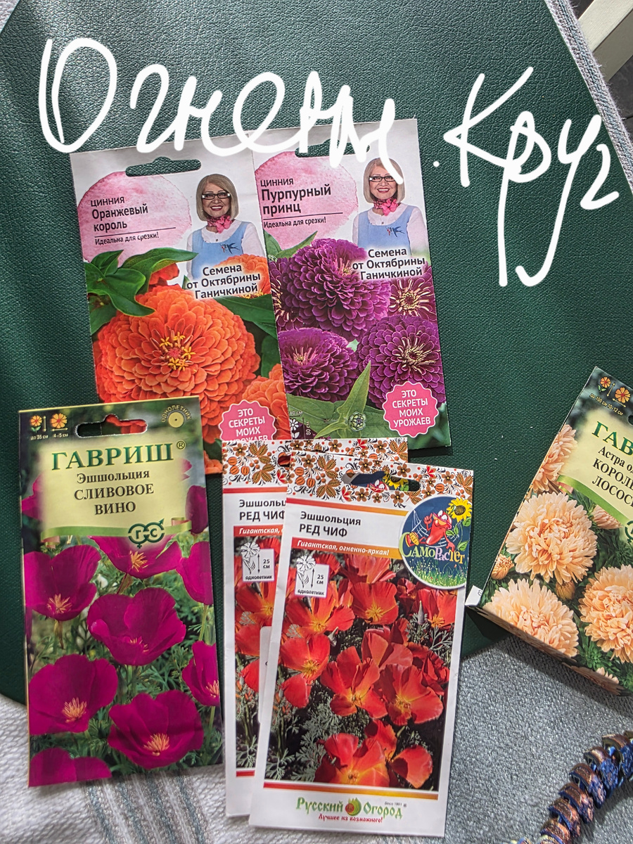 Все, я отстрелялась. Циннии 5 сортов и эшшольция 2 сортов с арабисом "Снежная Лапландия" посеяны, и на этом, пожалуй, хватит.