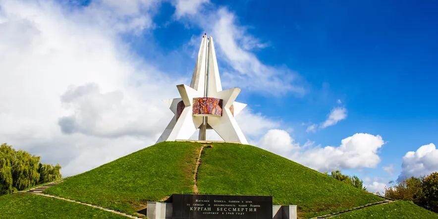 Курган Бессмертия — один из самых узнаваемых символов Брянска. Его заложили 7 мая 1967 года, а в основании мемориала находится земля, привезённая из городов-героев и с мест боевой славы, а также из уничтоженных фашистами брянских деревень. Сам комплекс стоит в парке «Соловьи» на правом берегу Десны и выглядит как искусственный холм с мощной звездой-пилоном наверху.