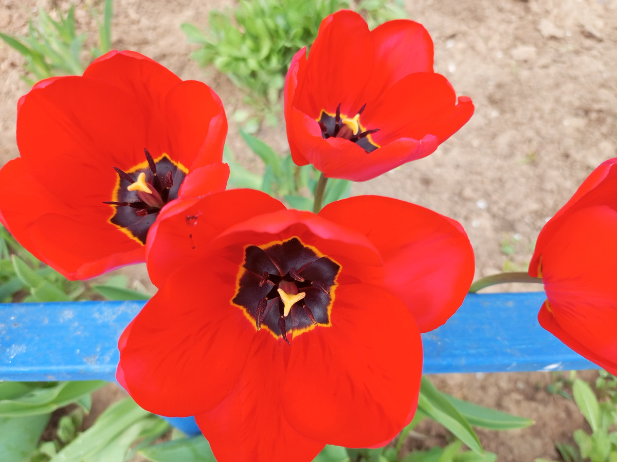 Дни хоть и прохладные стоят, зато тюльпаны дольше красотой своей радуют.Обычно в жару они у нас быстро отцветают. И в городе тоже красоты полно. У домов клумбочки ухоженные.