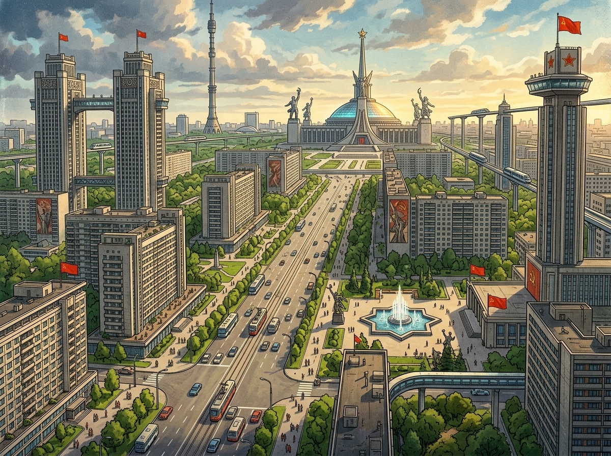 Советский Союз мечтал не только о новых заводах и электростанциях. В стране всерьез думали о создании новых городов будущего — удобных, рациональных, красивых и полностью соответствующих идеалам новой эпохи. Идея была в том, чтобы не просто застраивать территорию, а создавать пространство жизни человека нового типа. Это должен был быть город с четкой планировкой, удобным транспортом, развитой промышленностью, зелеными зонами, широкими проспектами и современной инфраструктурой. Советские архитекторы и градостроители пытались соединить функциональность, коллективизм и эстетику. В некоторых проектах города даже делились на специальные зоны: жилые, производственные, культурные и административные. СССР строил общество будущего, а значит, и города должны были быть будущего. Старые дореволюционные улицы считались слишком хаотичными, тесными и «неудобными» для новой жизни. Поэтому мечтали о городах, где все будет подчинено логике, порядку и прогрессу. Как и у многих грандиозных советских идей,