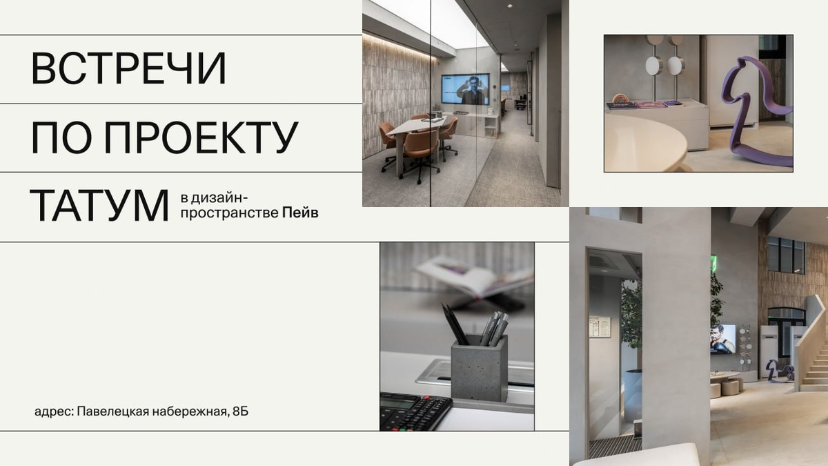 Поэтому тем, кто рассматривает #Татум, мы предлагаем встретиться лично — в дизайн-пространстве #Пейв по адресу Павелецкая набережная, 8Б. Можно будет спокойно обсудить проект, посмотреть планировки и задать все вопросы. Записывайтесь на встречу через наших менеджеров по телефону +7 495 032-02-67.