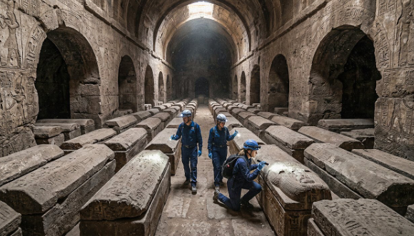 Исследователи не начали копать сразу. Сначала они использовали специальный инструмент — георадар. Это как рентген для земли. Вместо того чтобы гадать, где копать, машина сканирует подземное пространство и показывает формы, которые могут быть гробницами или пустыми пространствами.