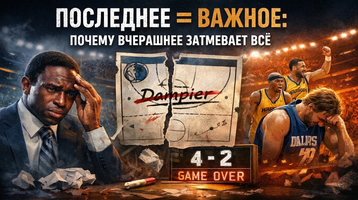 Этот поворотный момент в далласской раздевалке стал хрестоматийным примером эффекта недавнего - когнитивного искажения, при котором свежая информация кажется нам непропорционально важной и вероятной. Чтобы понять, почему блестящий спортивный стратег сбросил со счетов колоссальный успех ради недавней аномалии, необходимо разобрать три скрытых механизма этой ловушки.