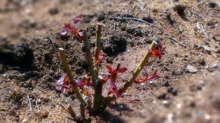 - Поздняя первая обработка. Если опрыскать розы после того, как почки уже раскрылись и показались молодые листочки, можно пропустить момент первичного заражения. Первую искореняющую обработку проводят до распускания почек, по спящим побегам.