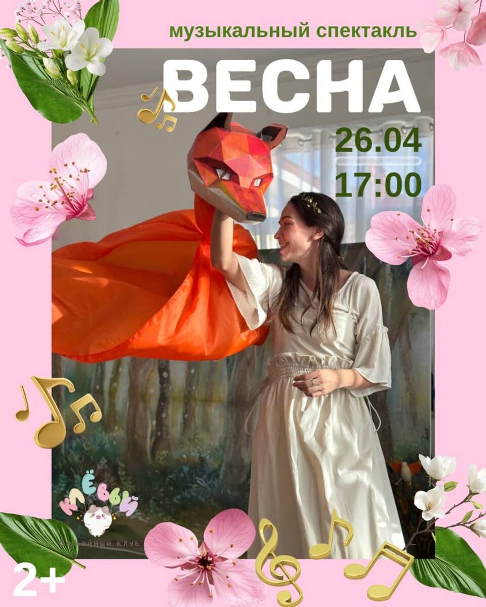 » 🌿 📅 26 апреля ⏰ 17:00 Приглашаем малышей от 2 до 5 лет на камерный музыкальный спектакль о пробуждении природы 🌱 🎶 «Весна» — это мягкое погружение в мир звуков, образов и первых ощущений Вместе мы: 🕊 услышим пение соловья и весёлых птиц 💧 послушаем, как звенит капель и бежит ручей 🌱 увидим, как оживает лес после зимы 🌸 познакомимся с первыми цветами ✨ Формат спектакля позволяет детям не просто смотреть, а чувствовать и проживать происходящее Это особенно важно для малышей — через звук, ритм и атмосферу 👶 Подходит для самых маленьких зрителей (2+) ⏳ Продолжительность: 45 минут 💰 Стоимость: 2600 руб.